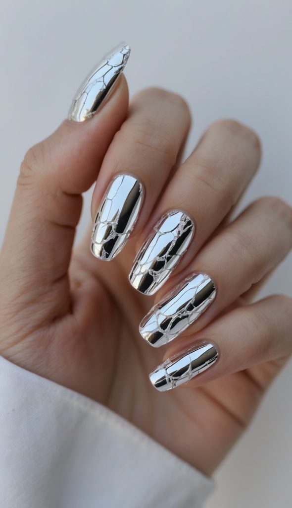 Chrome nails capture the spotlight at homecoming with their mirror-like shine that stands out and adds a touch of futuristic elegance to any outfit.
