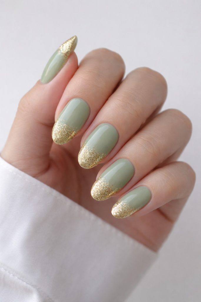 Soft green nails fade into sparkling gold tips, creating a chic Mardi Gras–inspired look with subtle glamour. Prefer something festive yet elegant? This glittery finish adds just the right celebratory shine..