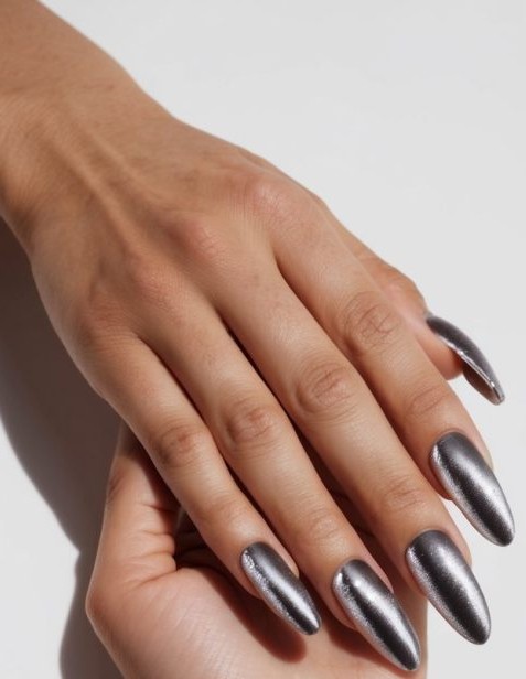 The metallic nail art style can be as subtle or as bold as you want, from accent nails with chrome details to full sets with futuristic vibes.