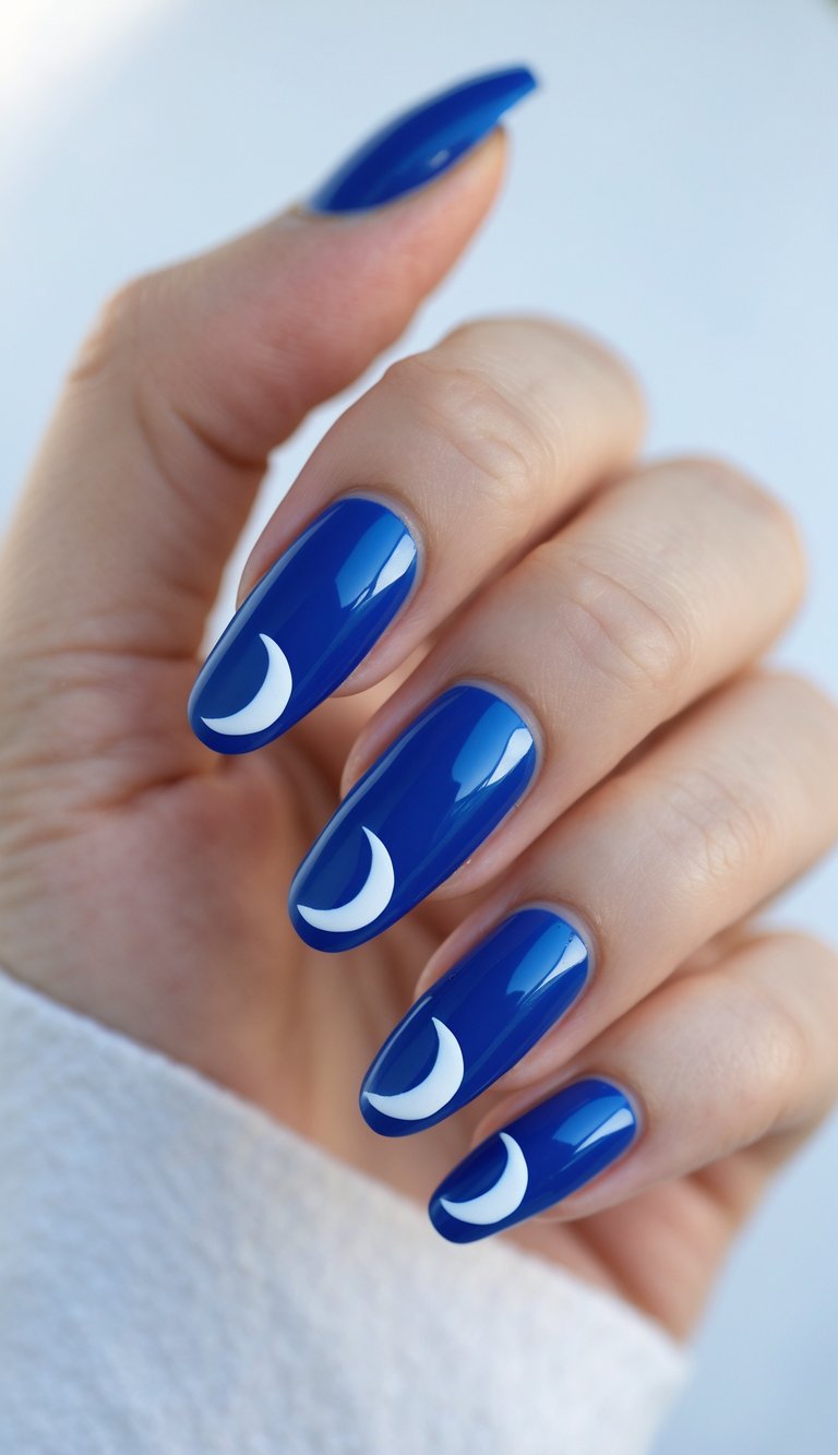 Cobalt Blue Crescent Moon Accent Nails