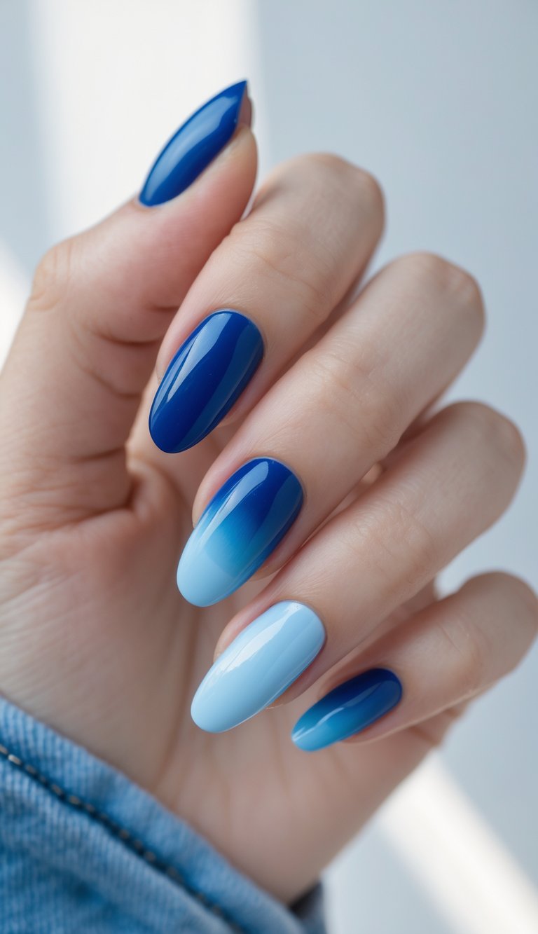 Cobalt and Light Blue Ombre Nails