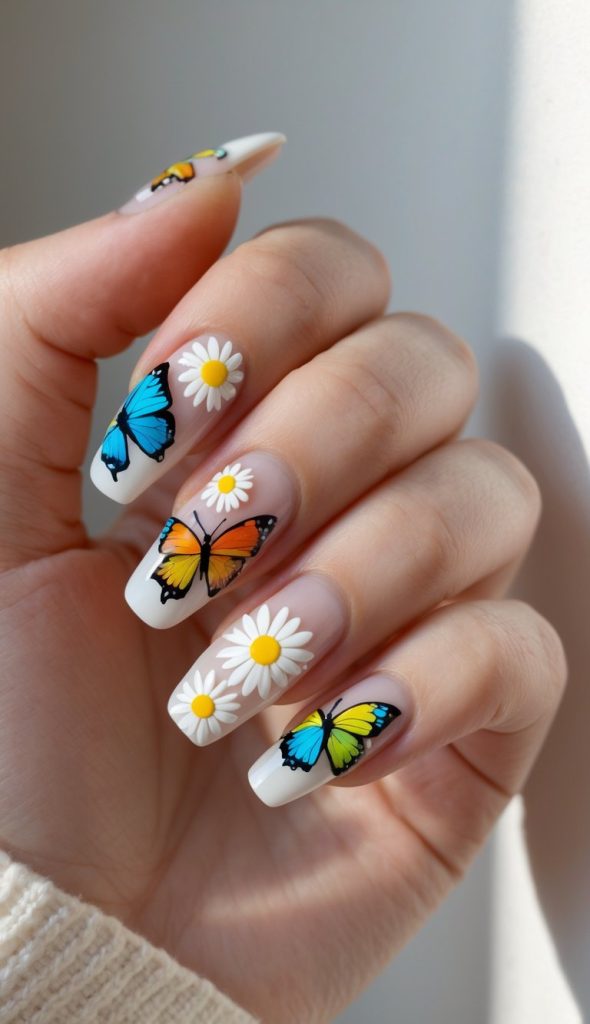 The classic French fade nail art puts a fresh spin on the timeless French manicure. It features a seamless gradient from soft pink base and muted blue base colors to white tips, creating an elegant and sophisticated look.