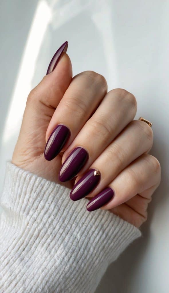 Blending deep maroon into rich purple creates a stunning gradient effect that’s perfect for fall and winter manicures.