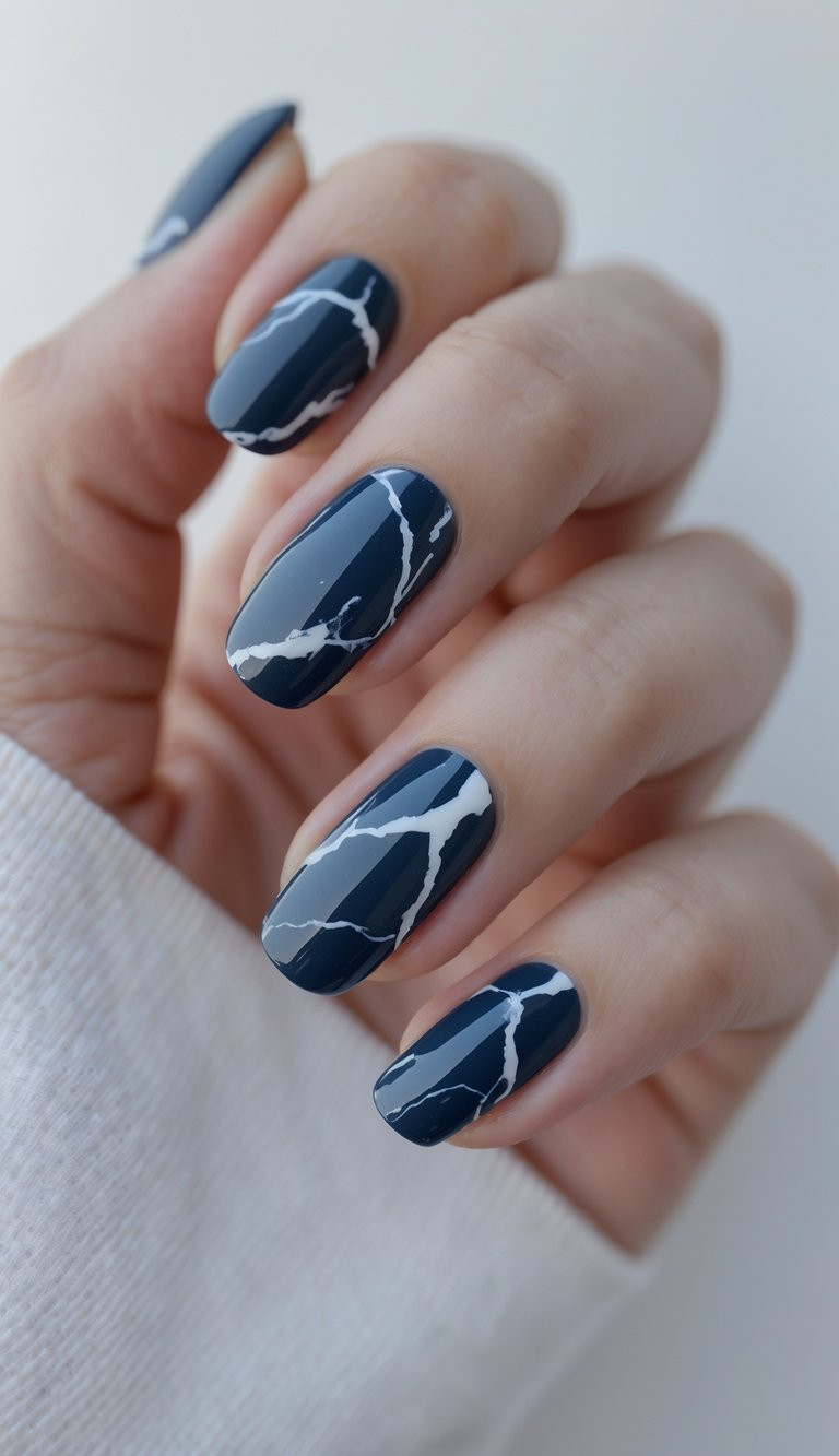 Navy Marble Nails