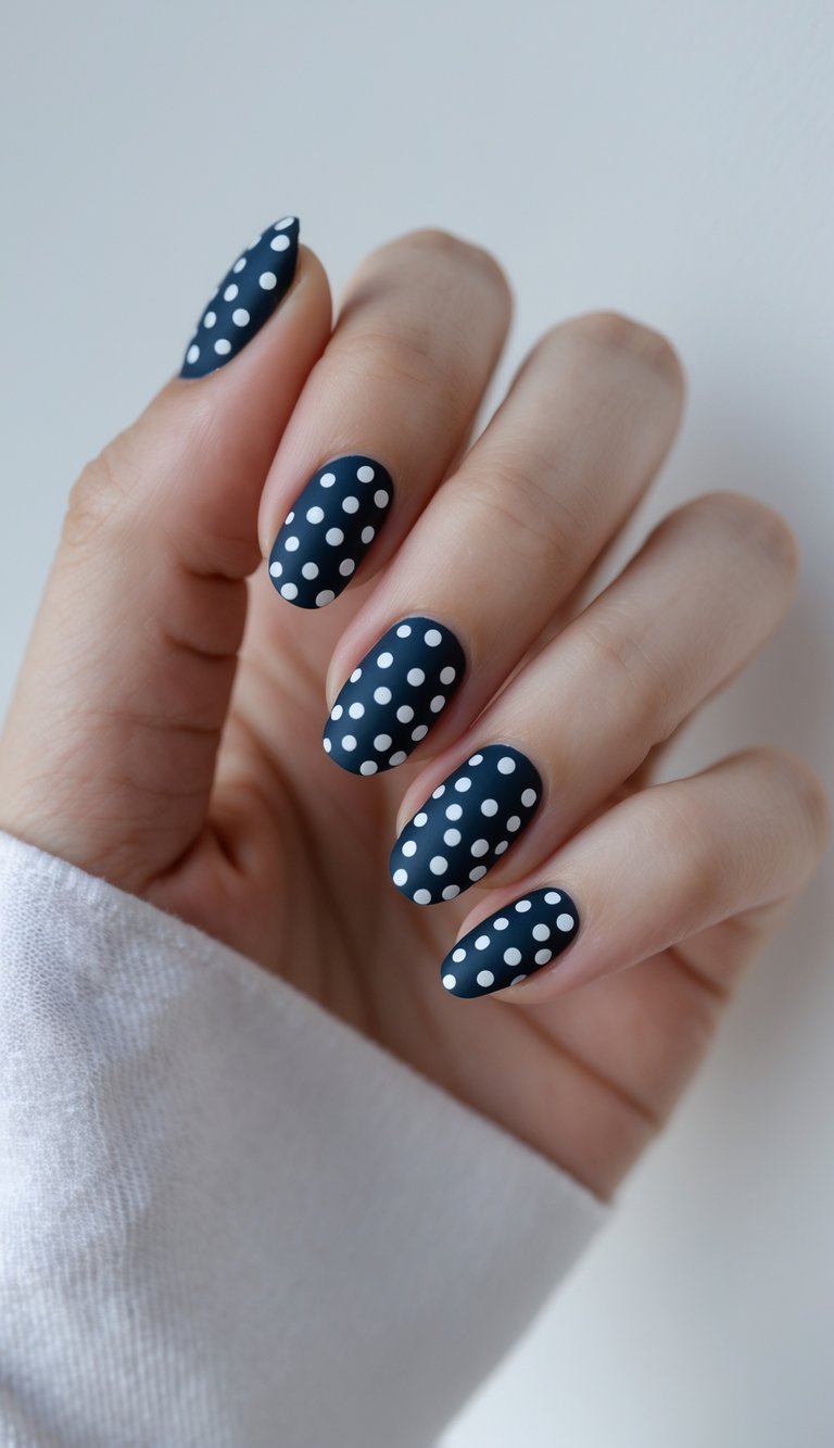 Navy Polka Dot Nails