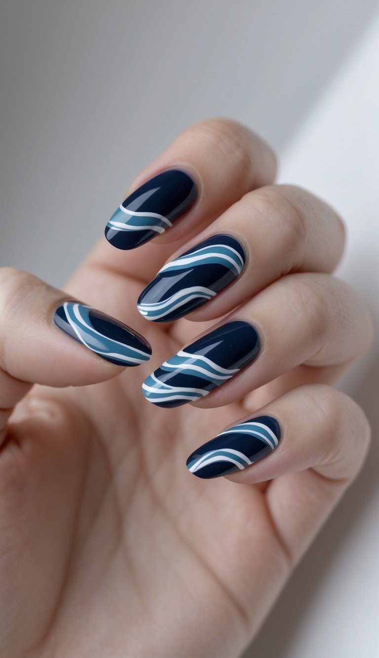 Abstract Navy Wave Nails