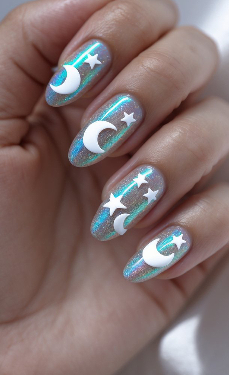 With so many colors and celestial details to explore, nail art can go far beyond simple polish and turn into something truly eye-catching and unique.